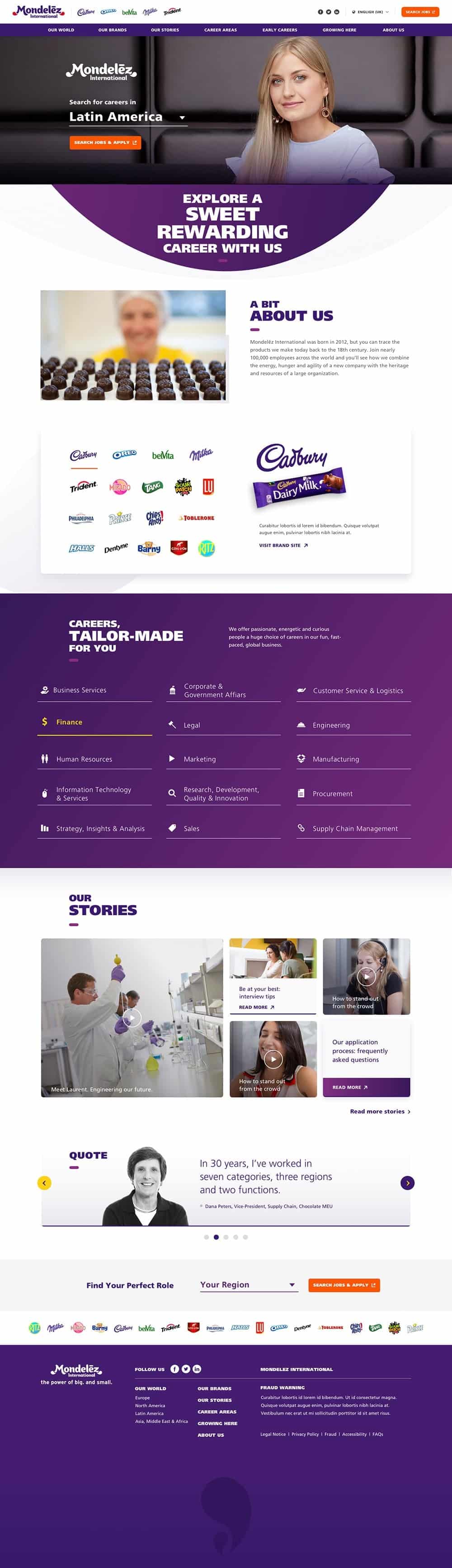Mondelez are a fun-loving company with loads of familiar everyday brands like Cadbury, Milka & Oreo. They had a careers site, it was fine but it didn’t speak to the professional job-seeker Mondelez wanted to attract. After all, snacks is serious business.